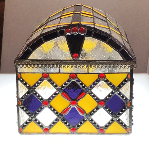 制作はガラスを小さく■にカット&フュージングし●をたくさんつくることから始まりました。