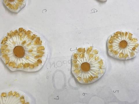 これらのピースを使って、モールドにガラスピースをつけていきます。