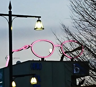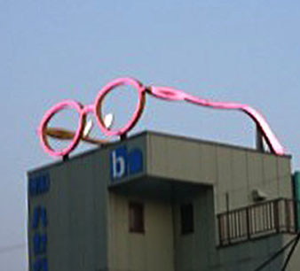 ビルの上に、こんなに大きなメガネが乗っているって、面白いですね。