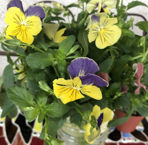 工房のエントランスで何か月も咲いて楽しませてくれたパンジー