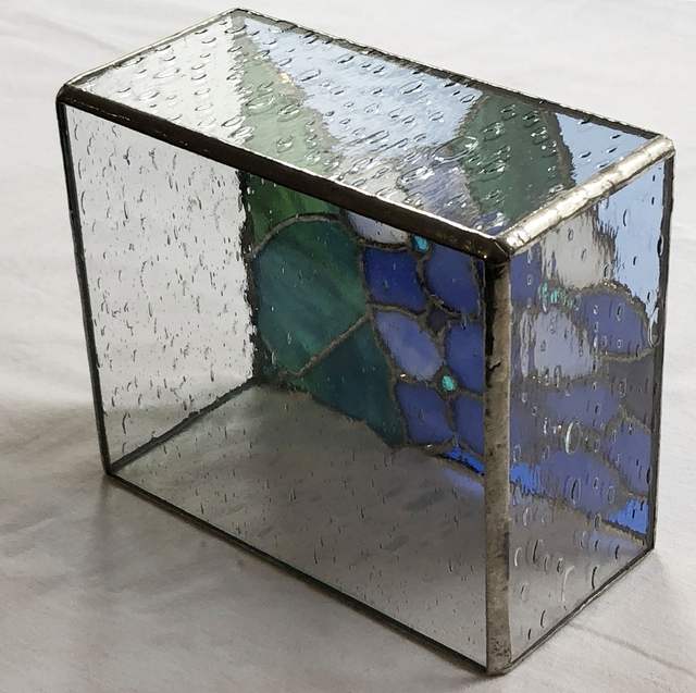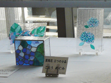 あじさいのブルーと水の透明感をガラスで表現したいと模索しながら、三つの作品になりました。