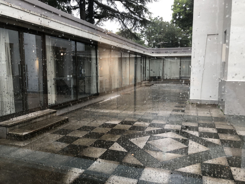 しかも、この作品の場所の窓だけ、上の雨どいが詰まっていて・・・