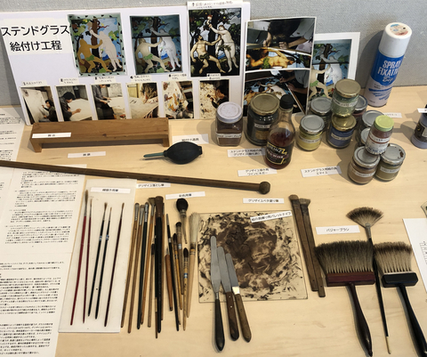 作品以外にも、ステンドグラスがよくわかる盛沢山な展示となっております。