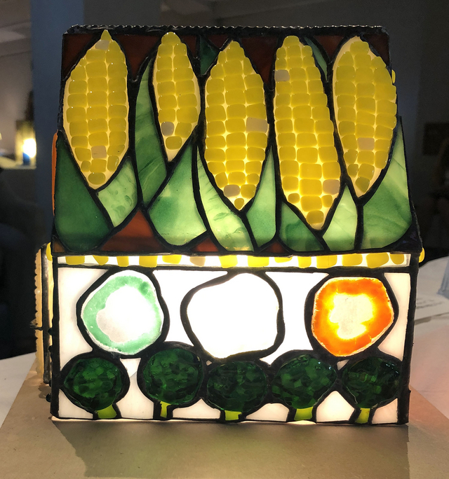 家の後ろ側の壁は、トウモロコシの断面とニンジン。
