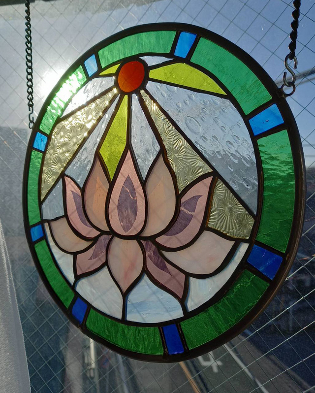 コパーテープフォイリングの丸型のウインドウパネルです。