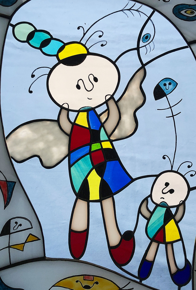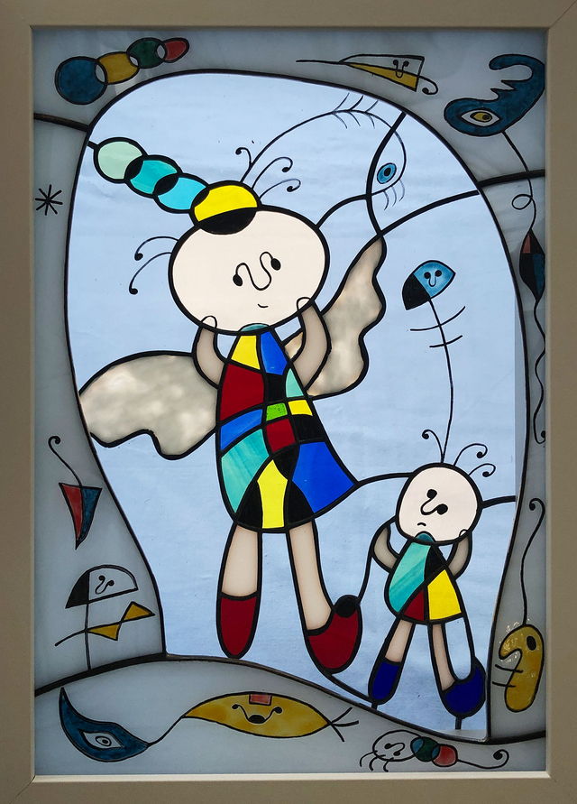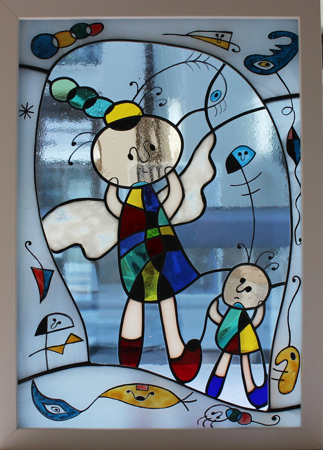 手前のガラスにはミロの絵を参考に
