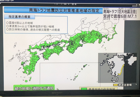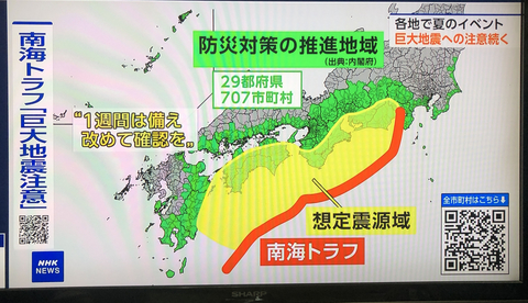 その直後に、「南海トラフ 巨大地震注意」 という注意喚起が出されています。