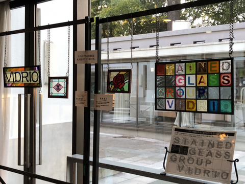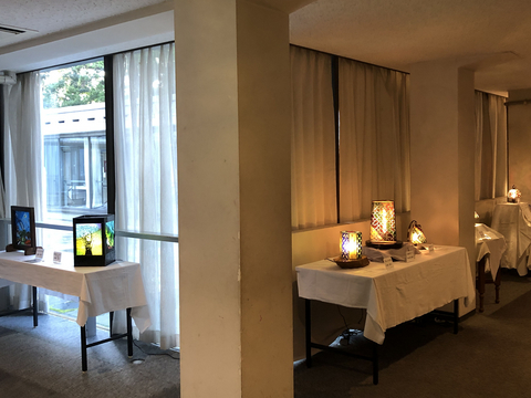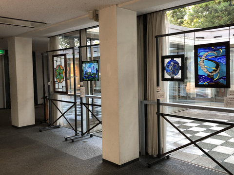 突き当りの壁に、ガラスモザイク作品も展示しています