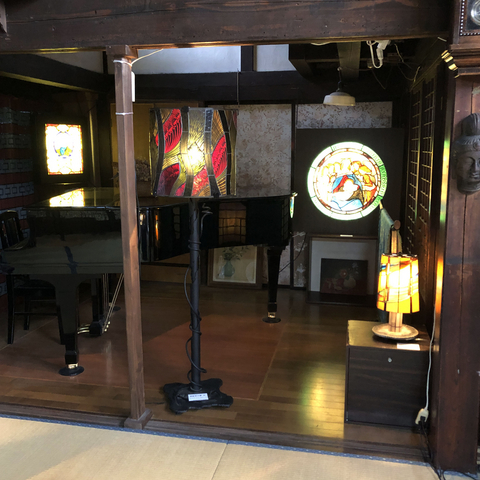 ステンドグラス展示の会場は、この家の蔵座敷で、20畳ほどの座敷とグランドピアノがある部屋です。