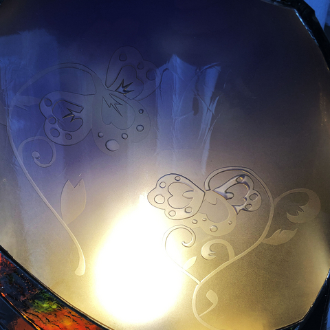 その瞬間を青いガラスにサンドブラストで表現してみました。