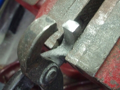 万力にガリをはさみ、金やすりで凹んでいる部分を平らにします。