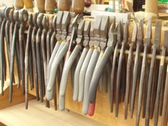 上記のような作業を繰り返しいくと、柄の部分がくっついてきてしまい、使いにくくなってしまいます。その時は、下の写真のように、柄をたたいて少し広くします。そうやって、手に馴染んだ工具を出来るだけ長く使うようにしています。