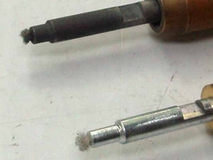 下側は新品のカッターですが、上側のように減ってくるとオイルが落ちてきません。こうなると、カッターの交換の時期ですので、先生にご相談ください。
