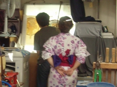 第4日曜日は絵付け授業の日ですので、授業の終了後6時からということで、授業を浴衣姿で受ける人も・・・