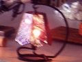 吊り下げ式ベースに取り付けたランプは、一つはティファニーランプに使うパステル調のガラス、一つはピンクのアンティークガラスで、どちらもとても綺麗でした。