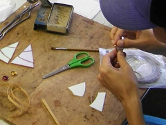 ガラスカット練習を終え、仲良く三人でコパーテープ巻きです。