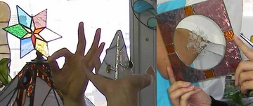 女性Aさんは“小さなガラスの星”、男性の方は“LEDで楽しむXmasツリー”、女性Bさんは、“サンドブラストのウィンドウペンダント” 、の制作です。三名の方がそれぞれ別のコースというのは珍しいので講師もちょっと緊張?
