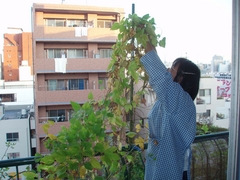 2008年7月の 「地球温暖化防止」 (2) 緑のカーテン でお伝えした、「ホップ」は、夏の暑い時期に涼しい日陰をつくってくれました。