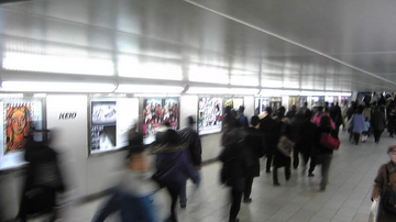 JR新宿駅構内のコンコースから中央西口&京王線方面に行く通路は、各美術館、博物館などの告知ポスターでいっぱいです。上の写真の通路の両側が、すべて美術関係の告知なのです。ここを往復すると東京の催しがわかるくらい。