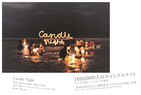 「100万人のキャンドルナイト」、2003年から毎年行われているこのキャンペーンは各地で広がりを見せ、夏至と冬至を中心とした期間の夜に行われるようになりました。「チーム・マイナス6%」 と同じように国民的プロジェクトになってきました。