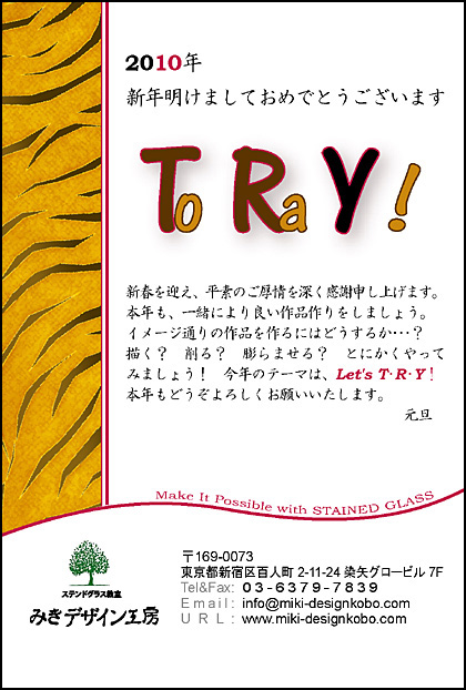 みきデザイン工房では、2010年も明るく楽しく自由な工房で、よりよい作品作りを目指して行きますので、どうぞお引き立てのほどよろしくお願い致します。