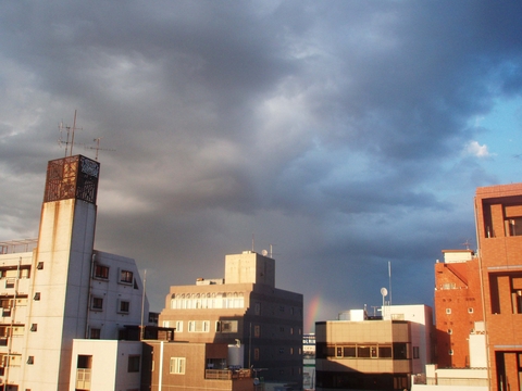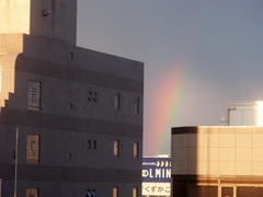 これまでも、工房のベランダからの空の写真を掲載しましたが、こんな大きな虹は初めてです。頑張って制作しているご褒美だね、と言って、また制作に戻りました。私も、今日は大きい方のクーラーの大掃除をしたので、埃まみれになったご褒美かな?