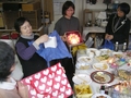 今回は料理が多いので、回転式立食? ということで、数分おきくらいに時計回りに動くようにしました。目指す料理のお皿をめがけてお皿とグラスを持って皆で一歩づつ回り、1時間もたたないうちに、もうお腹いっぱいになりました。