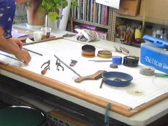 奇しくも左の写真の型紙を作っている写真は、ちょうど一年前に撮影したものです。冬は作業台を独り占めできますからね〜。