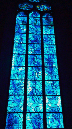 南側と北側の側廊は、シャルル・マルクによるものだそうです。シャルル・マルクのステンドグラスは洗礼をするところにもあるようです。私は見なかったのですが、聖シュテファン教会で購入した本には載っていました。(これも青、青、青です。)