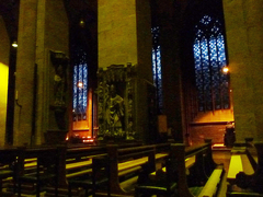 前回のブログで予告した、2010年11月のドイツツアー で訪れた、マインツ大聖堂のステンドグラスをご紹介します。この聖堂の近くにある 聖シュテファン教会 を見学したあと、階段を降りてきて少し歩き、このマインツ大聖堂に入りました。当日は、11月末で日没も早いし、しかも雨。聖シュテファンでのんびりしすぎたのか、もう薄暗くなってきてしまいました。