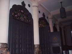ドア上に入っているこのステンドグラスは、内部の電気がついているので、綺麗に見えました。