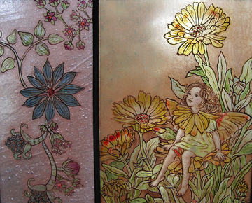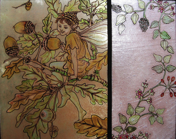 明日はひな祭り。ひな祭りに関連したステンドグラスを探したのですが、作った方はいなかったので、可愛い妖精のカップルのステンドグラスをご紹介します。(2011年9月 第31回びどりを作品展の出品作)