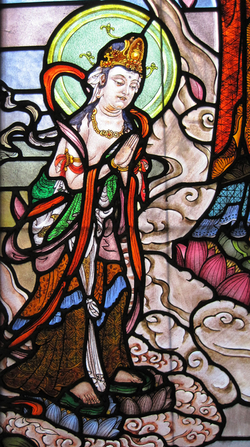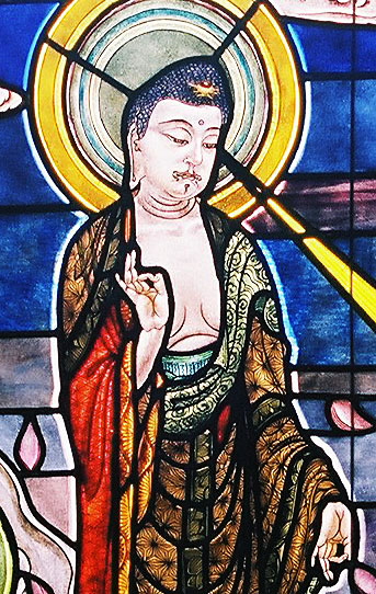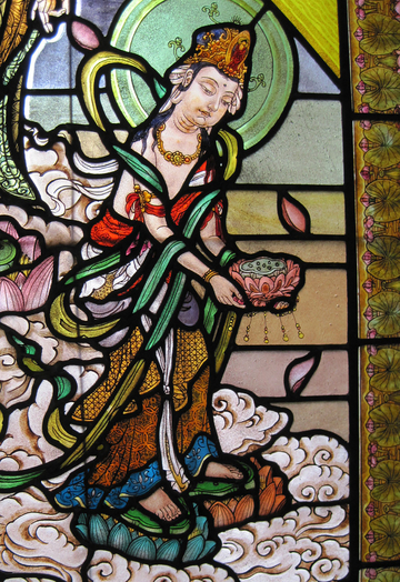 今月は東日本大震災の「慰霊」、「鎮魂」、「応援」の気持ちを込めて制作したステンドグラスをご紹介してまいりました。本日でひとまず終了にしますが、トリに、苦悩から救済されることを祈ってこの作品をご紹介します。(2011年9月 第31回びどりを作品展の出品作)