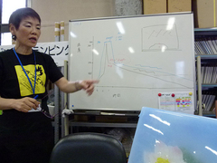 “ねこまんま” さんのレポートに続き、F津さんの第一倉庫3階の 「アトリエ・クニさんのフュージング&スランピングのデモ」 のレポートをご紹介します。