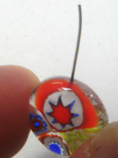 ある程度の大きさのあるガラスだったら、ファイバーペーパーでテグスや皮ひもを通す穴をあけておくのだけど、小さすぎるのでそれは無理…