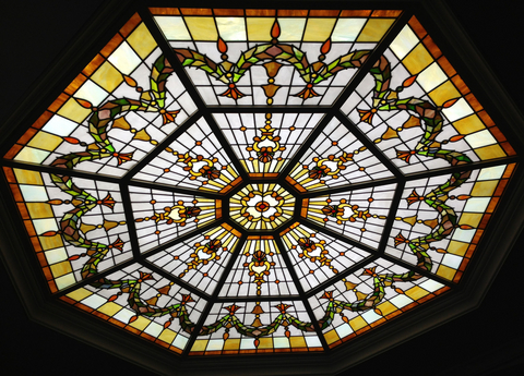 ん? と近づいていったら、天井ホールに大きなトップライトのステンドグラスが入っていました。