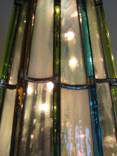 ガラスロッドにも電球の光が当たるように、ストライプのガラスとガラスの間に少し隙間をあけました。暗いところで見ると、これがすごく効果的でした。