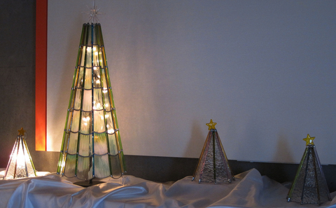 その、スカイツリーをイメージしたXmasツリー型のランプをご紹介します。 これも、第32回 びどりを作品展 の出品作です。