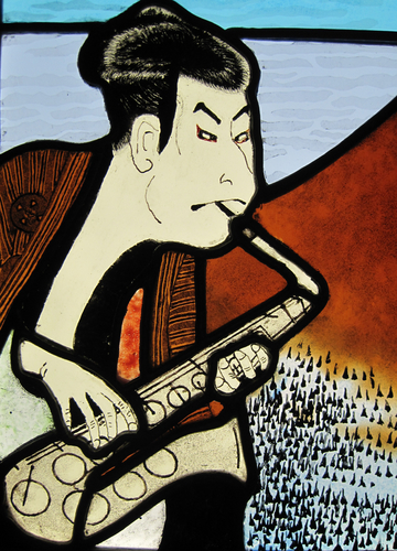 前回のブログ、「富士山の作り方」 で制作風景をお伝えした、夢の中ならではの、SHARAKUとJAZZの融合? というパネルをご紹介します。第32回 びどりを作品展 の出品作です。