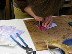 ステンドグラスのガラスの中には、アートガラスと呼ばれる、ガラスそのものの色合いが美しいガラスがあります。この体験コースはアートガラスを使って作っていただくコースです。