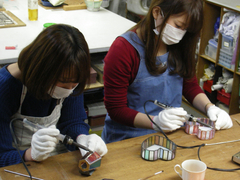 今度は、女子二人で、「フットライト(常夜灯)」 と 「ハートのキャンディBox」 の体験制作を受講されました。