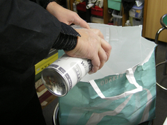 紙袋の中でスプレーすると、中が真っ白な濃霧状態になりますので、パッと口を閉めます。