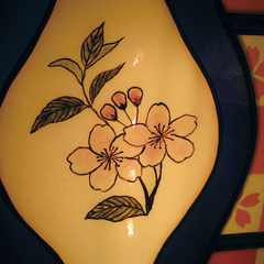 もうすぐ、桜がどんどん咲いて、美しい季節になりますが、一足お先に桜が満開のランプをご紹介します。第32回 びどりを作品展 に出展した作品です。