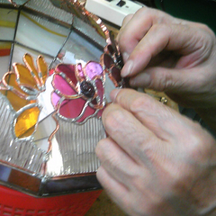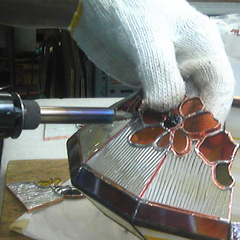 これは、花芯の部分を作っているところです。これを窯で焼いてフュージングして作りました。