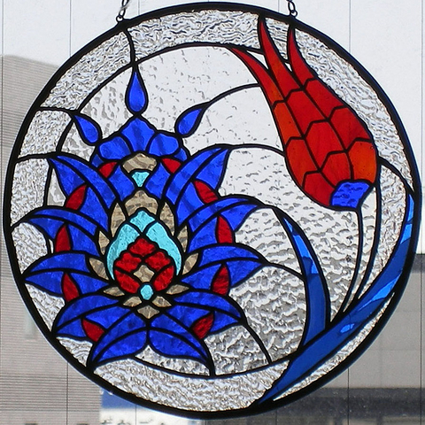 トルコのモスクの古典的なタイル柄のモチーフをステンドグラスにした、生徒さんの作品です。