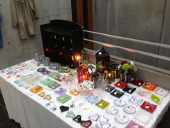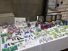 即売コーナーも、一点もののフュージング小物、ハウス型のランプなど、見ているだけで楽しめる商品がたくさんあります。