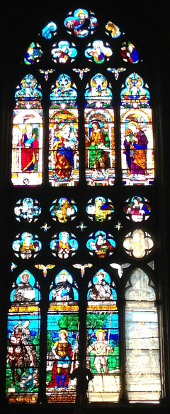 特に有名なのは、右の袖廊のこのステンドグラスです。