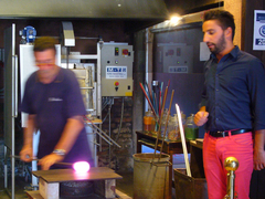 その銀ちゃんに、吹きガラスの実演に連れていってもらいました。