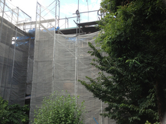 こうして、高橋講師は、この養生幕の向こう側が、この夏の仕事場になりました。