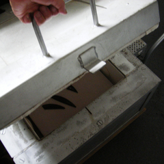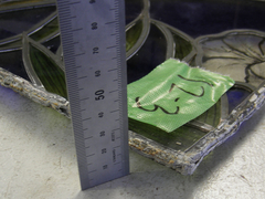 割れたガラスと同じ色、同じ風合いのガラスを探して、ガラスをカットします。